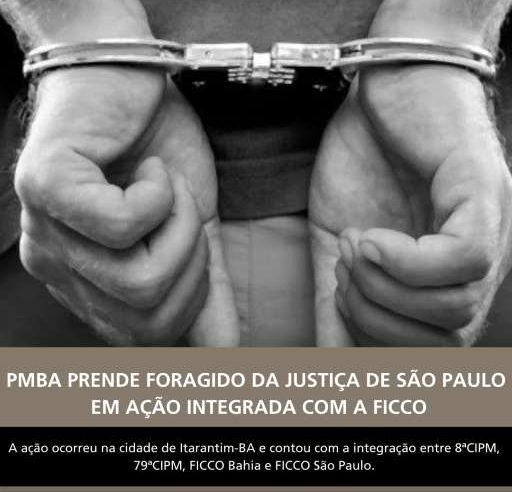 Ação integrada da PMBA e FICCO prende foragido da Justiça de São Paulo em Itarantim