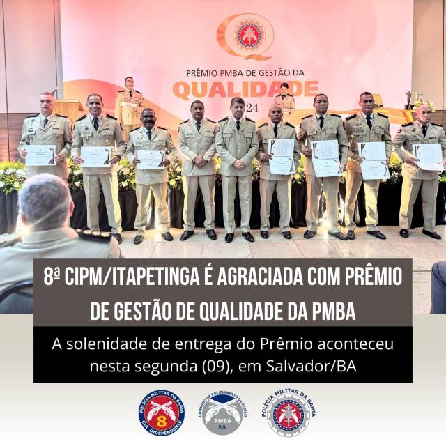 8ª CIPM é agraciada com Prêmio de Gestão de Qualidade da PMBA