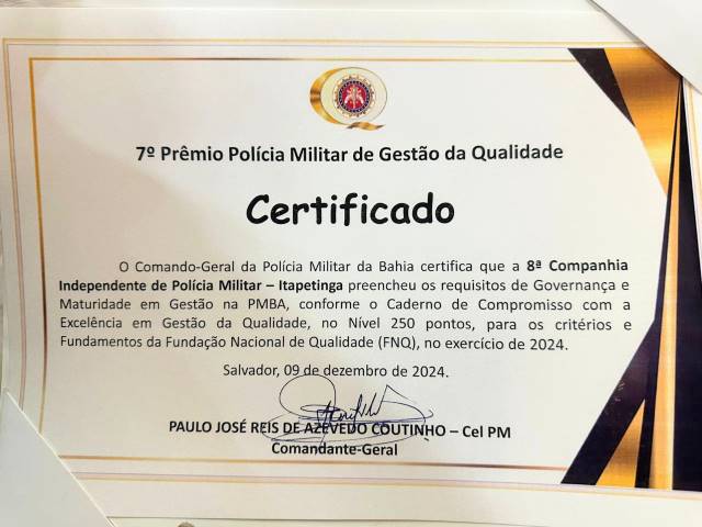 O justo e merecido reconhecimento é uma celebração não só do trabalho árduo dos membros da 8ª CIPM, mas também da confiança e do apoio da comunidade, que compartilha os frutos dessa parceria bem-sucedida.