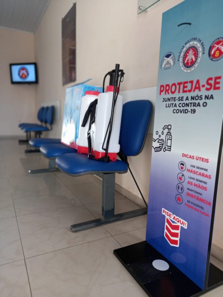 Também foram adquiridas novas “bombas costais de pulverização” para a desinfecção das diversas áreas da unidade com solução de hipoclorito de sódio. Este tipo de medida já estava sendo adotada. Porém, com a aquisição de novas bombas, os pelotões também serão beneficiados por conta da praticidade para realização de desinfecção.