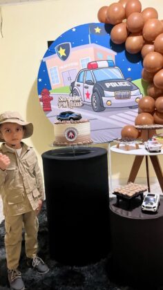 Os policiais, prontamente, atenderam à solicitação. Vestidos com seus uniformes impecáveis, eles chegaram à festa de Lucas, trazendo consigo a aura de heroísmo e proteção que tanto inspira a criança. Os olhos de Lucas brilharam ao ver seus heróis de perto, aqueles que ele admirava e que representavam a segurança de sua comunidade.