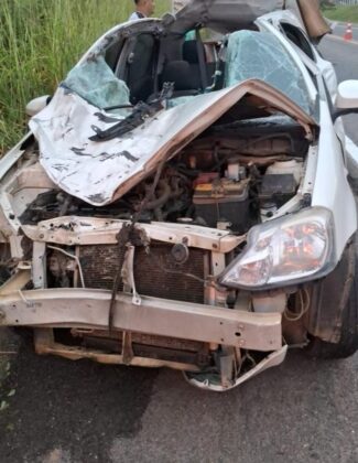 Imagens do veículo parcialmente destruído circularam em vários grupos de WhatsApp, evidenciando a gravidade do impacto. Fotos do animal, infelizmente morto no acostamento da rodovia, também foram compartilhadas.