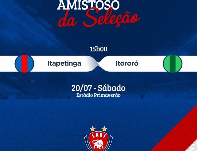 Amanhã a seleção de Itapetinga enfrentará a equipe de Itororó, às 15 horas no Estádio Primaverão. A entrada será 1 kg de alimento não perecível. Vamos torcer por nossa seleção!