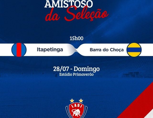 Leia MaisNo próximo domingo (28), tem Amistoso às 15 horas, no Estádio Antônio Carlos Magalhães (Primaverão). Desta vez a Seleção de Itapetinga enfrentará a Seleção de Barra do Choça.