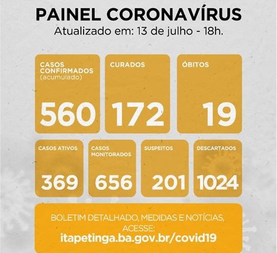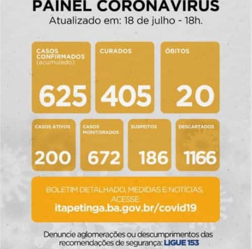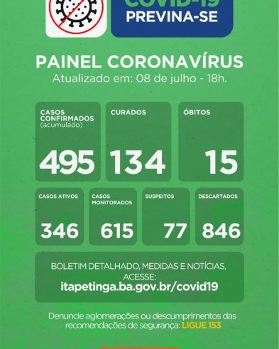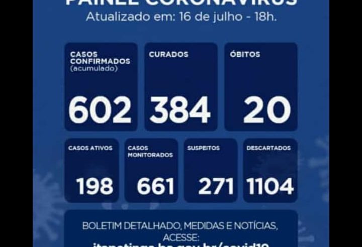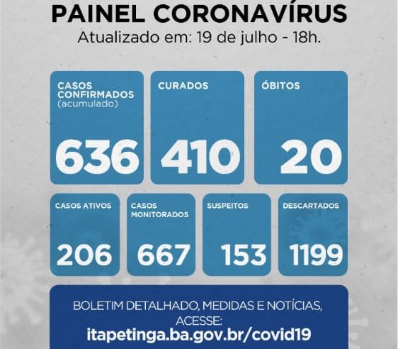 Itapetinga registrou nas últimas 24 horas, 03 novos casos de infecção pelo novo coronavírus. Já o número de pessoas curadas chegou a 468. A perspectiva da secretaria é que consigamos