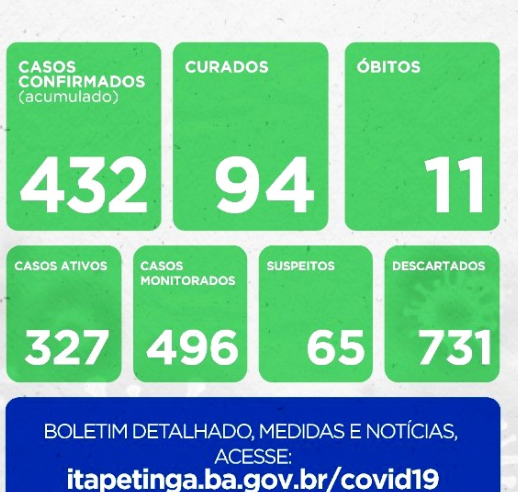 Itapetinga já tem 117 pacientes curados (10 novos casos) / casos suspeitos caíram de 53 para 23