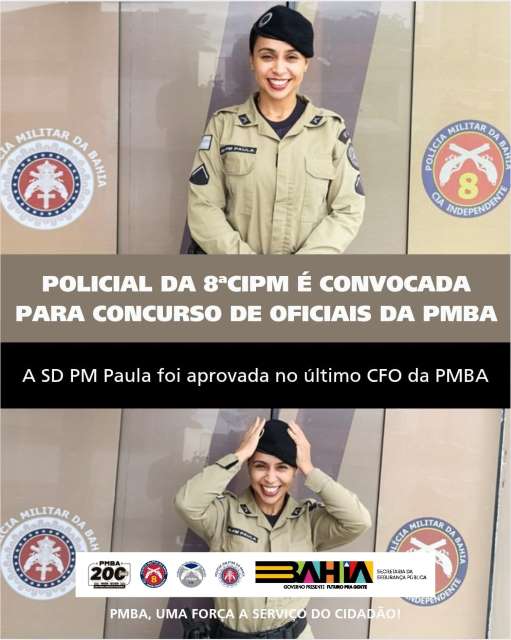 A 8ªCIPM parabeniza com orgulho a Soldado PM Paula por esta vitória tão significativa e deseja que sua jornada como futura Oficial da PMBA seja guiada pela sabedoria, justiça e o mesmo comprometimento que a trouxe até aqui.