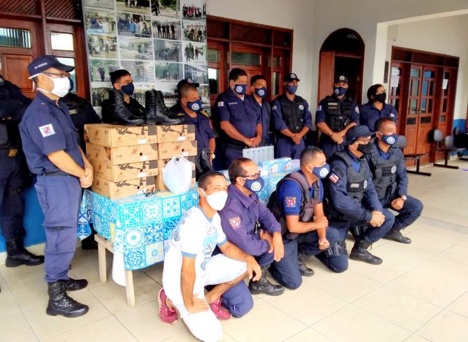 Aproveitando o ensejo dos EPI’s doados pela SENASP, o comandante Weltmo Vieira ao montar os Kits Individuais para a tropa, acrescentou um par de botas coturno (Azimute Brasil) material que foi adquirido pela prefeitura municipal. O novo fardamento já foi licitado e a empresa vencedora está confeccionando o material.