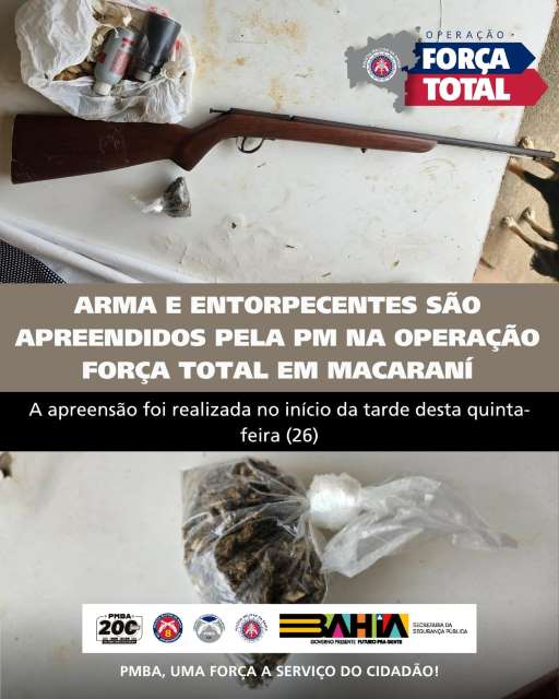 Guarnição da 8ª CIPM apreende arma artesanal e droga durante Operação Força Total em Macaraní
