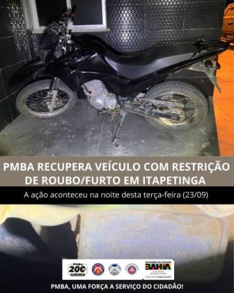 Guarnição da 8ª CIPM Recupera Motocicleta Furtada e Apreende Drogas em Itapetinga