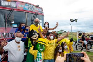A candidata a vereadora Manu Brandão, filha do ex-vereador Chico Ferro Velho, também participou da carreata do 15, no último domingo, 18.