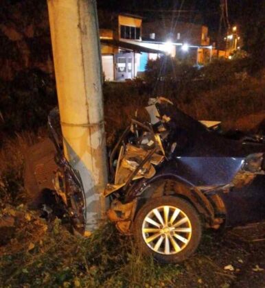 Após colidir violentamente contra um poste de energia elétrica, ele foi arremessado para fora do veículo.