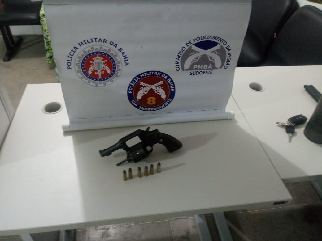 Por volta das 22h40, quando a ROTAM realizava ronda pela bairro Cassiano Gonçalves (conhecido popularmente como “Abacatão”), os policiais avistaram na Rua C um indivíduo, de iniciais M.S.S. (20), em atividade suspeita. Este, ao perceber a presença da PM, arremessou para dentro de um bar, um revólver calibre .32. Ao proceder com a busca pessoal no mesmo foi encontrado no seu bolso 10 buchas de maconha, 07 cápsulas de cocaína e a quantia de R$ 87,00 em cédulas diversas.