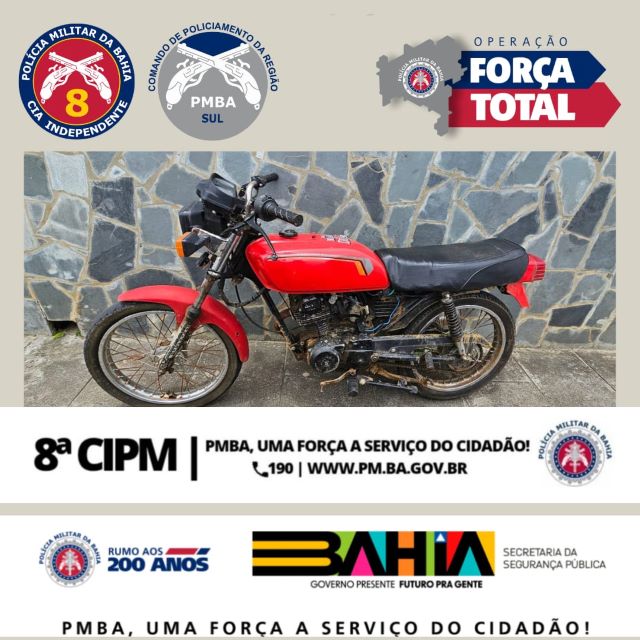 A apreensão ocorreu durante uma blitz na Avenida Ipiaú, no centro da cidade, por volta das 10h30. Os policiais notaram que um homem parou a moto abruptamente e a abandonou. Ao averiguar o veículo, a guarnição constatou que o motor pertencia a outra moto, resultando na apreensão e apresentação do veículo à autoridade competente.