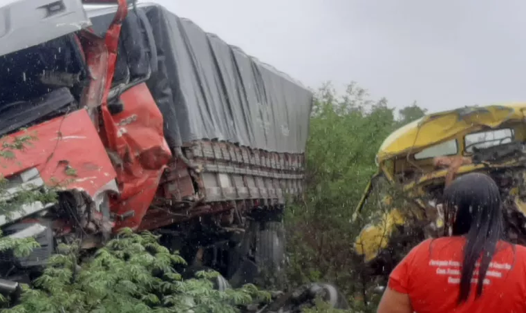Um homem morreu e sete pessoas ficaram feridas após uma batida entre três caminhões e um carro, nesta quarta-feira (20), na BR-324, em trecho que liga a cidade de Riachão