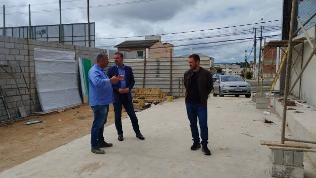 O delegado esteve, na manhã desta quarta-feira, visitando as obras e ouviu do engenheiro responsável a data da conclusão da obra.