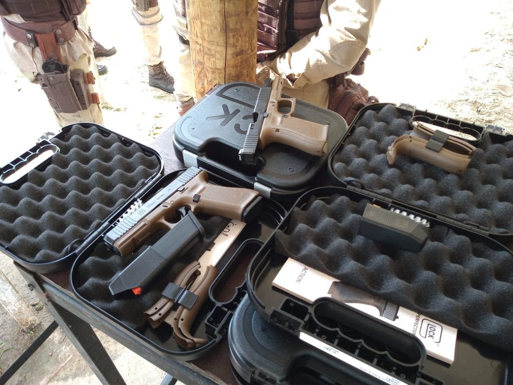 Nesta sexta (24/05) a 8ª CIPM/Itapetinga realizou uma instrução para os policiais do Pelotão Tático, de habilitação para o uso da Pistola Glock – G22, calibre .40, geração 05, que chegaram na Unidade. Um grupo de instrutores da RONDESP-SO, composto pelo Tenente PM Paulo Santana e pelos Soldados PM Ribeiro e Marcos Almeida, foi responsável por ministrar a instrução, que aconteceu em duas etapas.