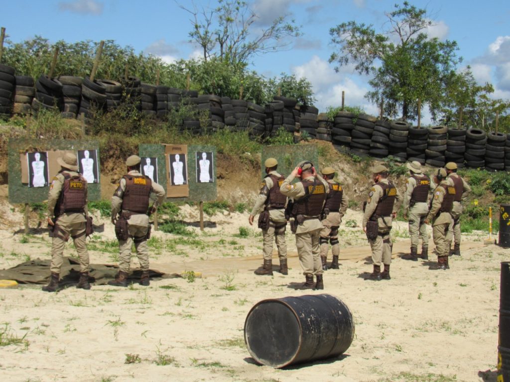 Policiais da 8ª CIPM/Itapetinga participam de instrução para a utilização das novas armas que chegaram na unidade