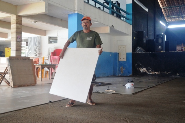 Outra área que vem sendo totalmente revitalizada,  é o salão social, que terá seu antigo piso de pó de granito, substituído pelo  com o que há de mais moderno. Um piso de porcelanato está sendo instalado, o que com certeza trará mais conforto ao associado.